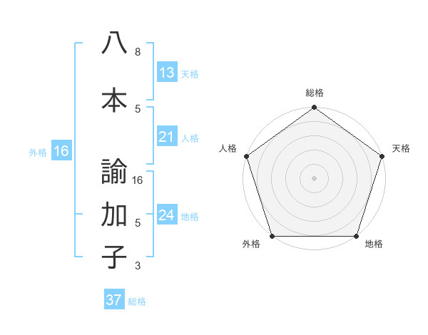 八本 諭加子さんを姓名の画数から五運を鑑定