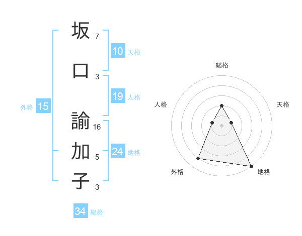 坂口 諭加子さんを姓名の画数から五運を鑑定