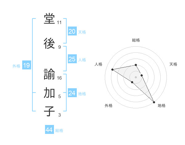 堂後 諭加子さんを姓名の画数から五運を鑑定