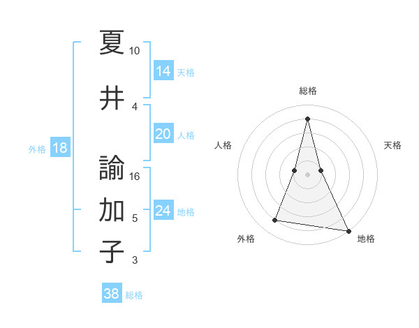 夏井 諭加子さんの総格は38画の4点!