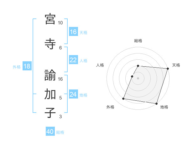 宮寺 諭加子さんの天格は16画の5点!