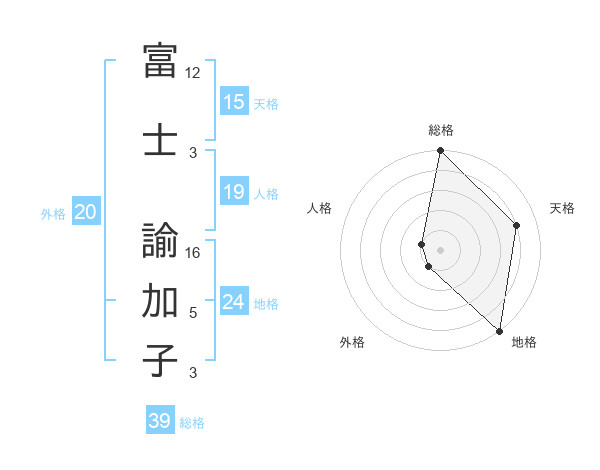 富士 諭加子さんの天格は15画の4点!