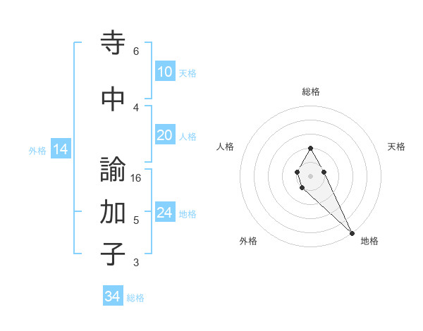 寺中 諭加子さんを姓名の画数から五運を鑑定