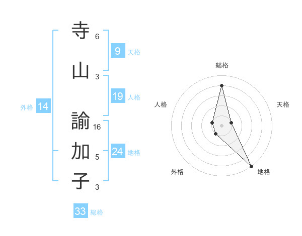 寺山 諭加子さんの総格は33画の4点!
