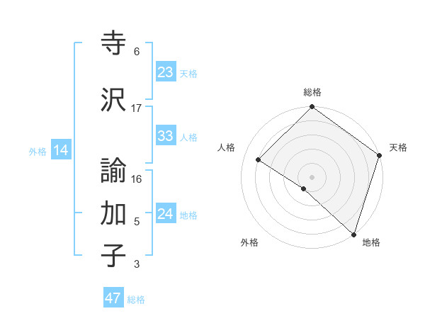寺沢 諭加子さんの総格は47画の5点!