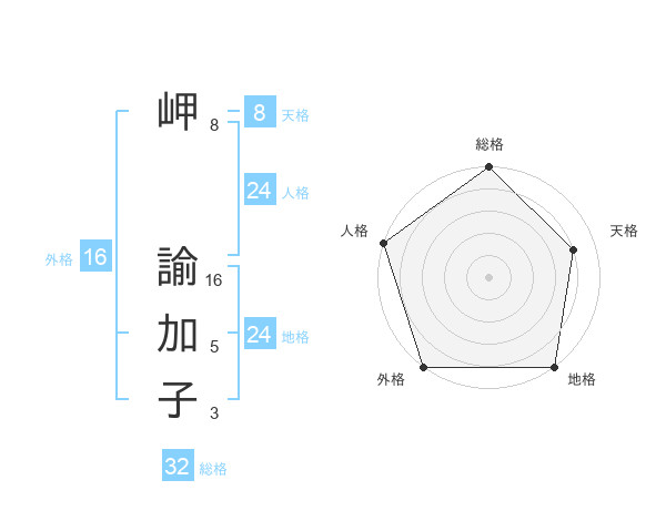 岬 諭加子さんの外格は16画の5点!