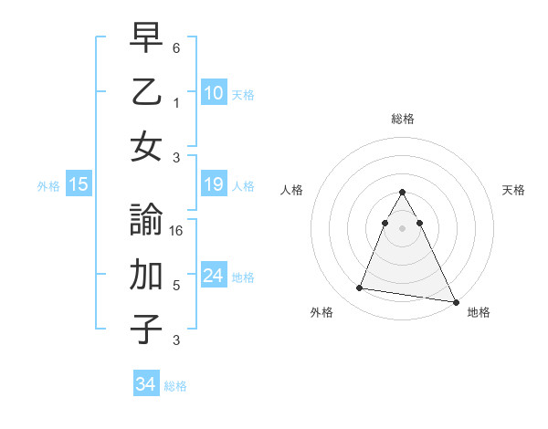 早乙女 諭加子さんを姓名の画数から五運を鑑定