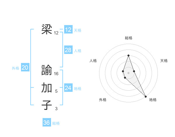 梁 諭加子さんの外格は20画の1点!