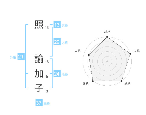 照 諭加子さんの総格は37画の5点!
