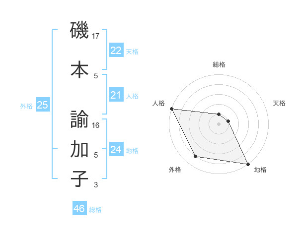 磯本 諭加子さんを姓名の画数から五運を鑑定