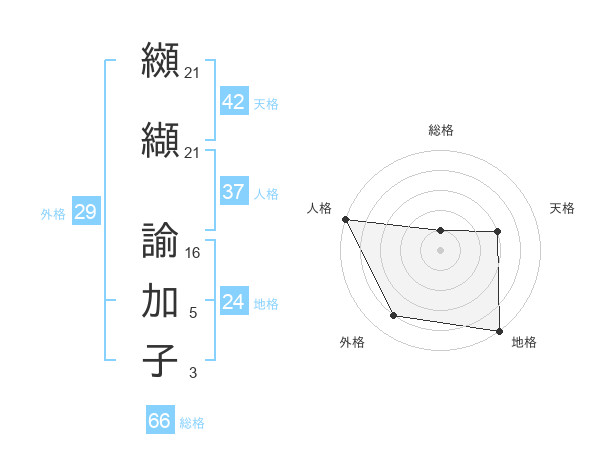 纐纈 諭加子さんの地格は24画の5点!