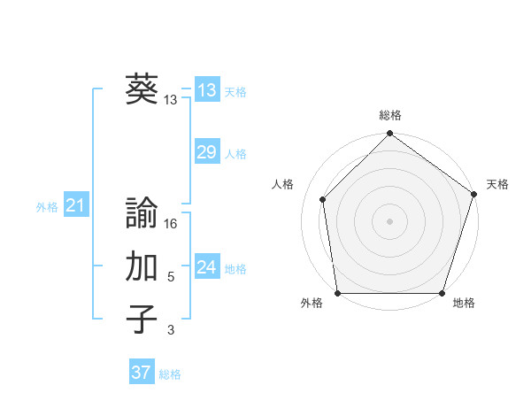 葵 諭加子さんの天格は13画の5点!