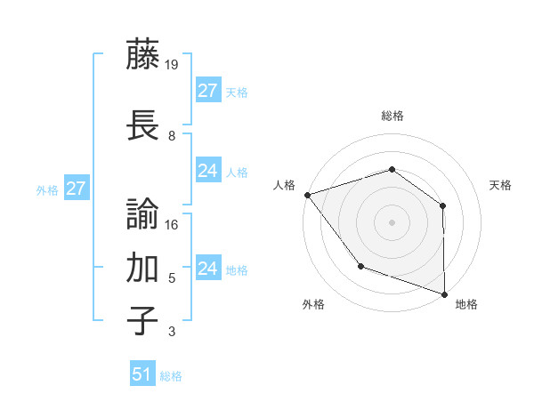 藤長 諭加子さんを姓名の画数から五運を鑑定