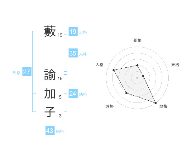 藪 諭加子さんの外格は27画の3点!