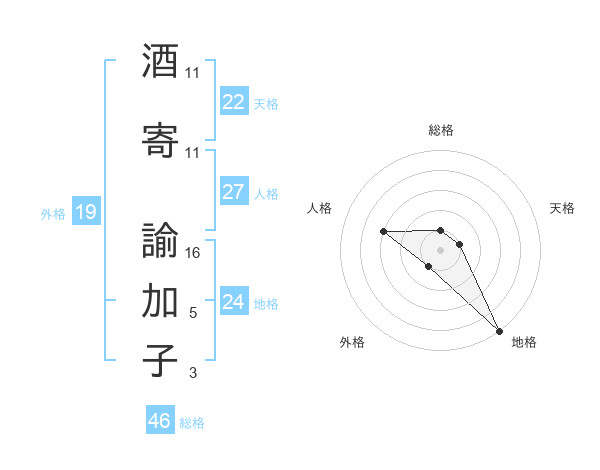 酒寄 諭加子さんの外格は19画の1点!