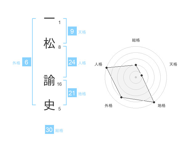一松 諭史さんの総格は30画の2点!