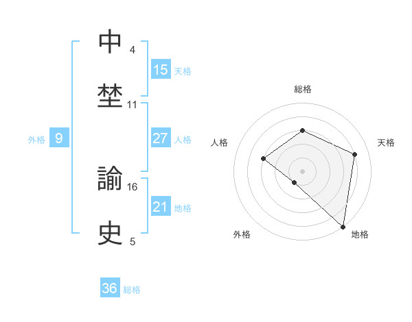 中埜 諭史さんの天格は15画の4点!