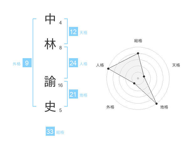 中林 諭史さんの総格は33画の4点!