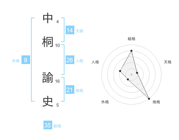 中桐 諭史さんの総格は35画の4点!