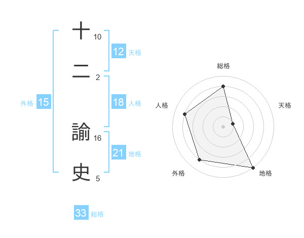 十二 諭史さんの地格は21画の5点!