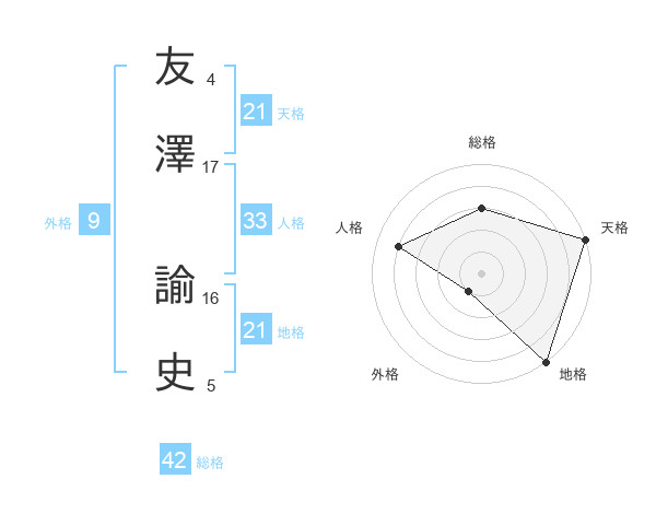 友澤 諭史さんの天格は21画の5点!