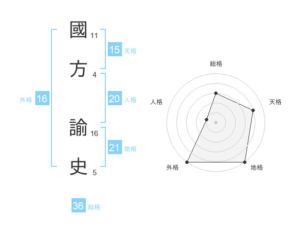 國方 諭史さんの外格は16画の5点!