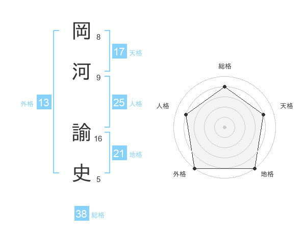 岡河 諭史さんの外格は13画の5点!