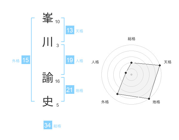 峯川 諭史さんの天格は13画の5点!