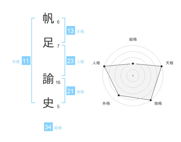 帆足 諭史さんの天格は13画の5点!