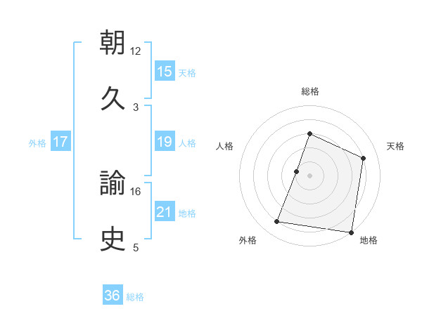 朝久 諭史さんを姓名の画数から五運を鑑定
