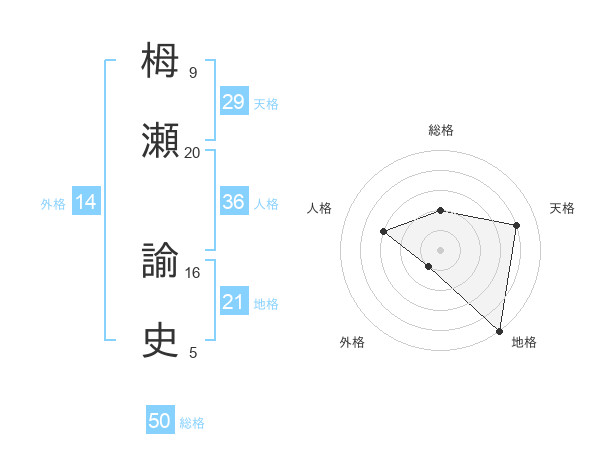 栂瀬 諭史さんの総格は50画の2点!
