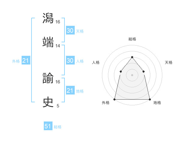 潟端 諭史さんの総格は51画の3点!