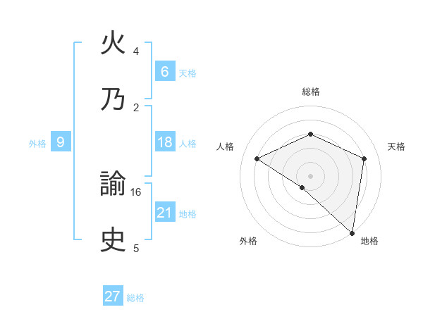 火乃 諭史さんの総格は27画の3点!