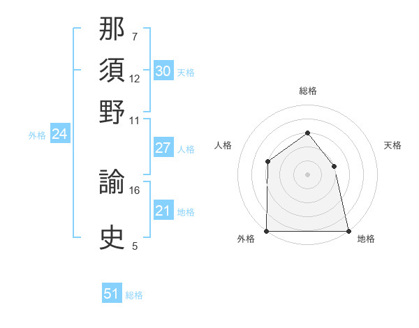 那須野 諭史さんの総格は51画の3点!