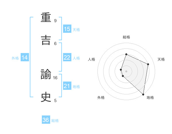 重吉 諭史さんの天格は15画の4点!