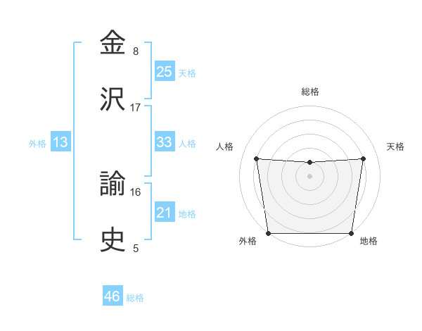 金沢 諭史さんを姓名の画数から五運を鑑定