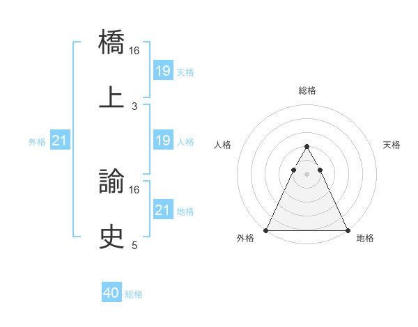 橋上 諭史さんを姓名の画数から五運を鑑定