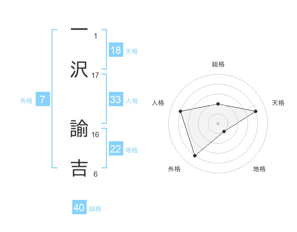 一沢 諭吉さんを姓名の画数から五運を鑑定