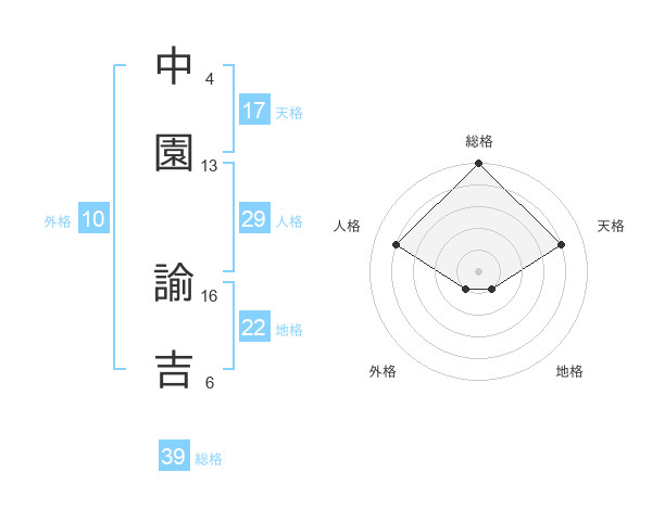 中園 諭吉さんを姓名の画数から五運を鑑定