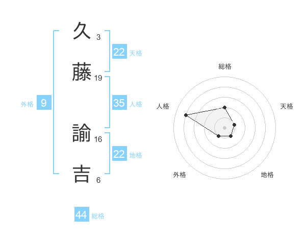 久藤 諭吉さんの地格は22画の1点!