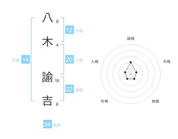 八木 諭吉さんの総格は34画の2点!