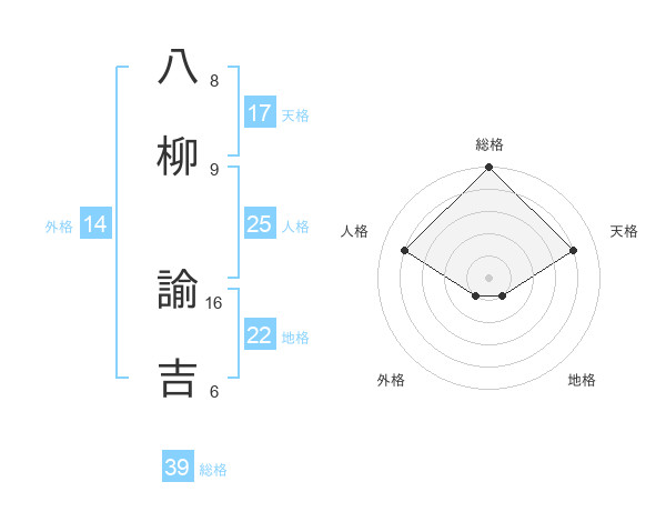 八柳 諭吉さんを姓名の画数から五運を鑑定