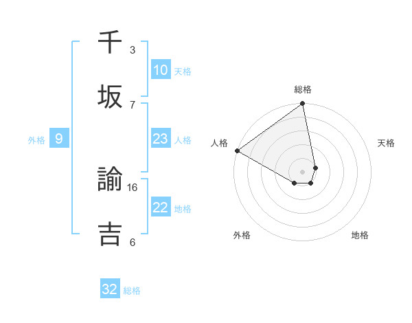 千坂 諭吉さんを姓名の画数から五運を鑑定