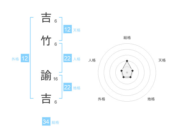 吉竹 諭吉さんの総格は34画の2点!