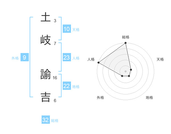 土岐 諭吉さんの総格は32画の5点!