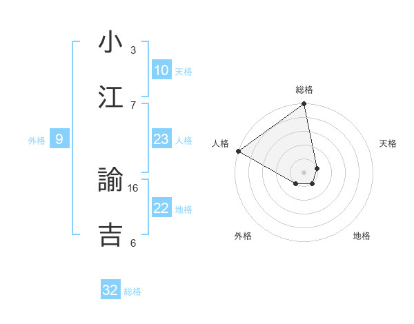 小江 諭吉さんを姓名の画数から五運を鑑定