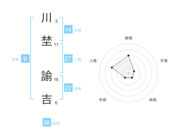 川埜 諭吉さんを姓名の画数から五運を鑑定