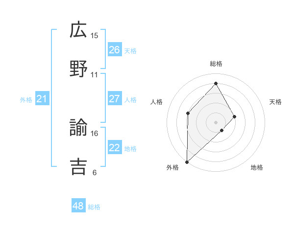 広野 諭吉さんを姓名の画数から五運を鑑定