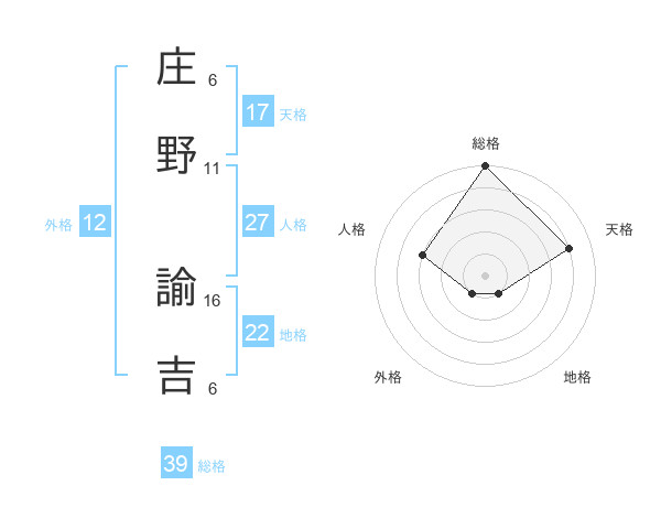 庄野 諭吉さんの総格は39画の5点!
