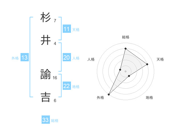 杉井 諭吉さんの総格は33画の4点!